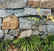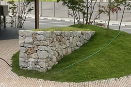 石は大きさや形もバラバラで、「野面積み」は、隙間や出っ張りもたくさんあります。 大きさや形が不揃いな石を巧みに噛み合わせて積んでいく高い技術が必要になります。庭師ならではの見せどころでもあります。